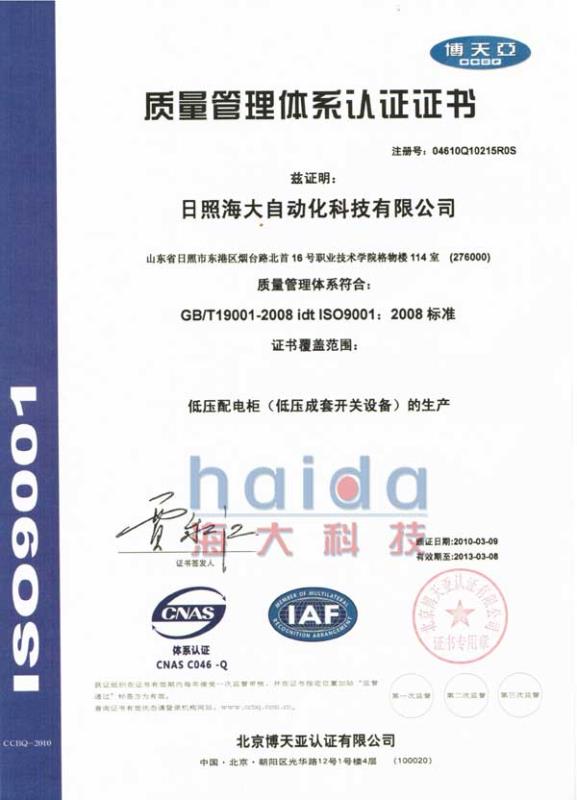 2010年3月9日,我公司獲得質(zhì)量管理體系(ISO9001:2008)認(rèn)證證書!