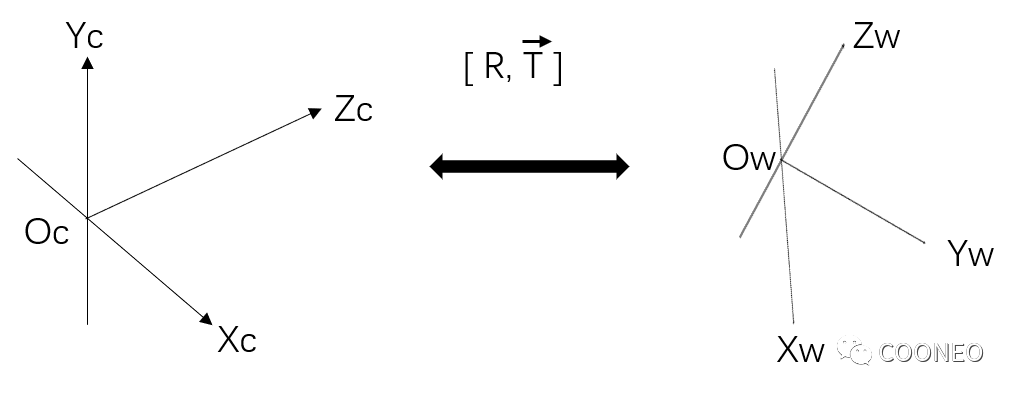 世界坐標與相機坐標都是三維坐標,遵循右手定則且三軸互相垂直。通常通過旋轉(zhuǎn)和平移的變化(外參矩陣)可以實現(xiàn)兩個坐標系的轉(zhuǎn)換。