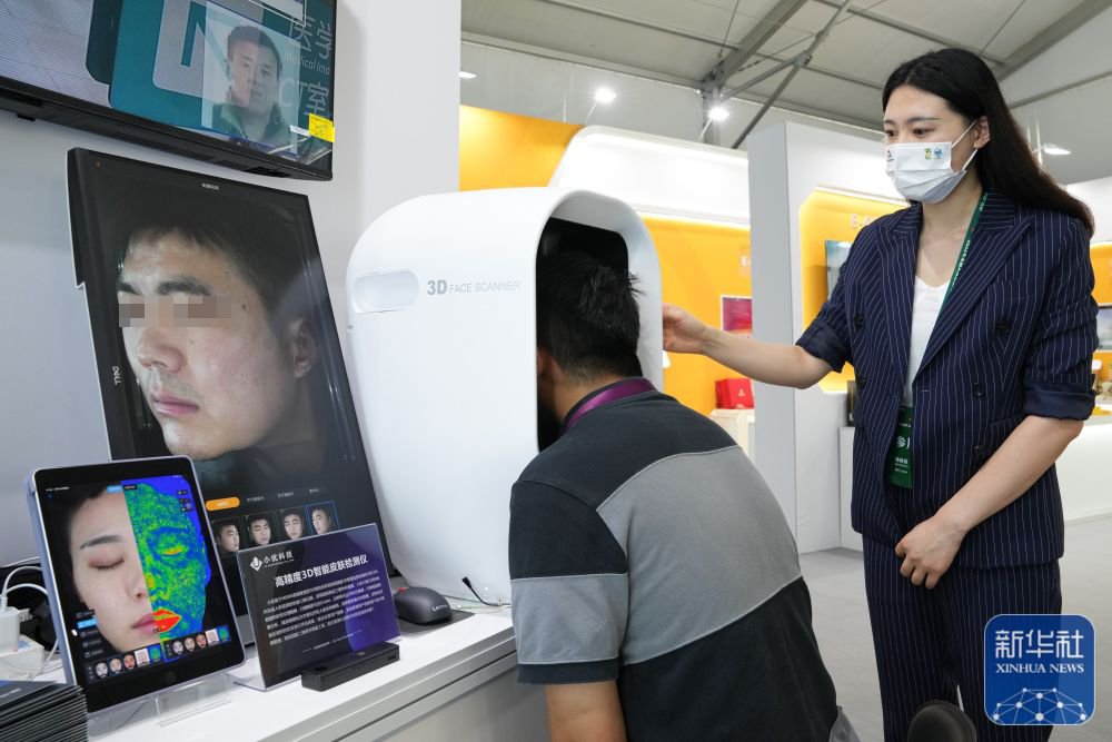 在活動現(xiàn)場人民網(wǎng)記者(趙越、王銳)對小優(yōu)智能科技商務總監(jiān)韓曉菲進行現(xiàn)場采訪,并現(xiàn)場體驗了小優(yōu)智能科技高精度3D人臉皮膚檢測儀。