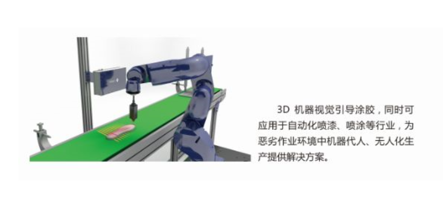 產(chǎn)品采用采用工業(yè)機(jī)械手和3D工業(yè)機(jī)器視覺檢測(cè)系統(tǒng)相結(jié)合的方式,3D工業(yè)機(jī)器視覺技術(shù)提取鞋底邊緣數(shù)據(jù),自動(dòng)生成涂膠軌跡,操作簡(jiǎn)單,換線便捷。通過運(yùn)動(dòng)控制引導(dǎo)機(jī)械臂動(dòng)態(tài)跟蹤,機(jī)器人可滿足亞毫米級(jí)涂膠精度,實(shí)現(xiàn)對(duì)鞋底刷膠的柔性操作。