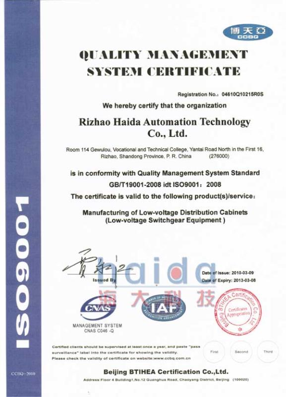 2010年3月9日,我公司獲得質(zhì)量管理體系(ISO9001:2008)認(rèn)證證書!