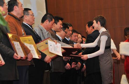 ??由湖北三環(huán)發(fā)展股份有限公司實施的江西萬年青水泥股份有限公司風機變頻項目等15個項目獲得“2010中國電機系統(tǒng)節(jié)能優(yōu)秀項目”,駐華代表處項目官員Virginie和中國標準化研究院院長王忠敏為獲獎企業(yè)頒獎。