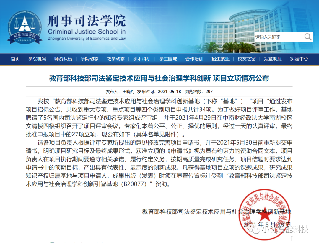 近日,中南財經(jīng)政法大學(xué)“教育部科技部司法鑒定技術(shù)應(yīng)用與社會治理學(xué)科創(chuàng)新基地”創(chuàng)新項目立項情況公布,小優(yōu)智能科技申請的“計算機智能三維人臉圖像自動比對技術(shù)研究及系統(tǒng)研發(fā)”項目獲評“中南財經(jīng)政法大學(xué)司法鑒定技術(shù)應(yīng)用與社會治理學(xué)科創(chuàng)新基地2021年度重大專項”。