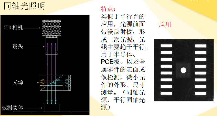 由光源構(gòu)成的照明系統(tǒng)按其照射方法可分為:背向照明、前向照明、結(jié)構(gòu)光和頻閃光照明等。其中,背向照明是被測物放在光源和相機(jī)之間,它的優(yōu)點(diǎn)是能獲得高對比度的圖像,LED面光源和平行光源是這樣使用的,用來突出產(chǎn)品的輪廓,比如工件的尺寸測量就是使用這種方法。前向照明是光源和相機(jī)位于被測物的同側(cè),這種方式便于安裝,比如條形光源,同軸光源,環(huán)形光源,圓頂光源,線光源等都是使用這樣的用法,這是最常用的照明方式。結(jié)構(gòu)光照明是將光柵或線光源等投射到被測物上,根據(jù)它們產(chǎn)生的畸變,解調(diào)出被測物的三維信息,這種方式比較少見。頻閃光照明是將高頻率的光脈沖照射到物體上,要求相機(jī)的掃描速度與光源的頻閃速度同步,目前頻閃照明方式一般都使用光源的控制器控制光源達(dá)到頻閃的功能,頻閃的工作方式可以大大提高光源的亮度和壽命,幾乎所有的LED光源都可以使用頻閃照明方式。